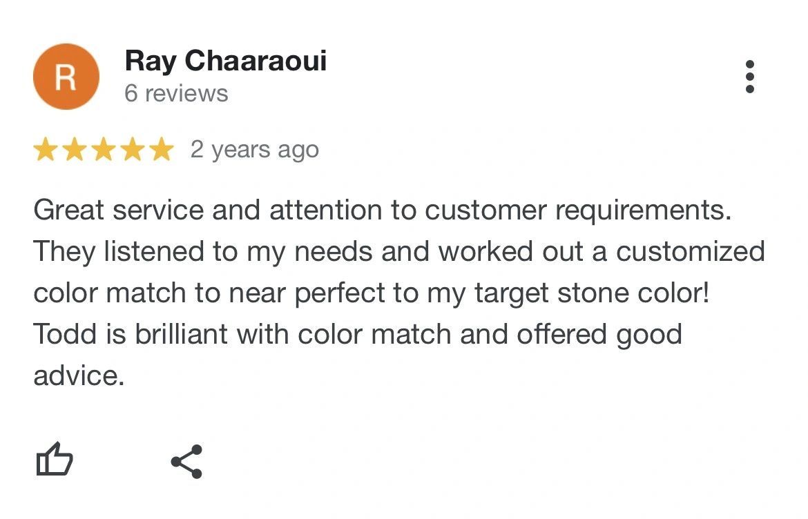 Your color matching needs are unique to your job; and we have the experts and tools to make sure we get your color right. Our color matching team will listen to you and make sure we get you the match you desire. Take a look, below, at what one customer said about his experience with our experts.